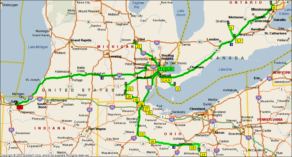 pictured above. I have gone as far west as Portage, IN. As far east as Brampton,